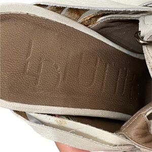 LD Tuttle Strappy Leather Sandals Size 6.5 Off White Peep Toe Stacked He…