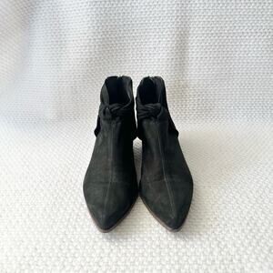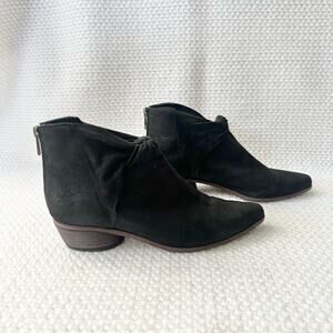 Size 37 from LD Tuttle. Style name The Marble knot twist ankle boot booties. Black soft nubuck leather upper. Twisted knot detail at front ankle. Back zip closure. Rounded stacked low heel. Preowned in good condition with no stains or tears.