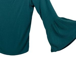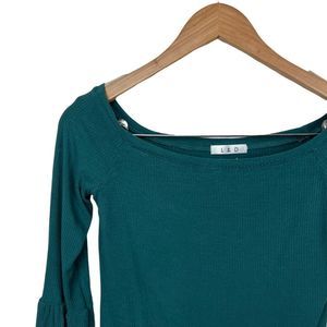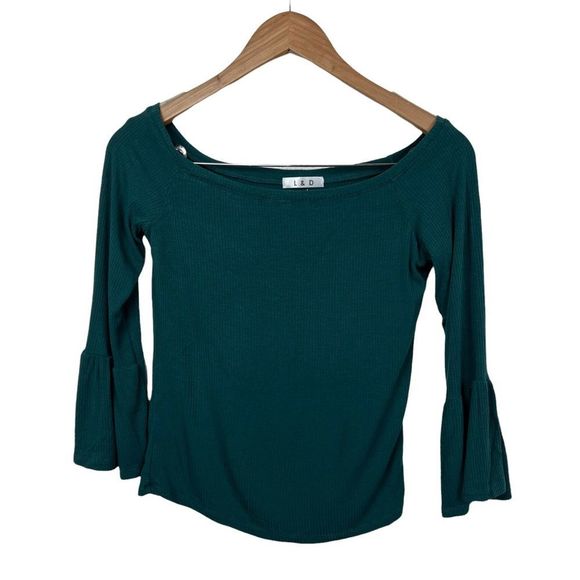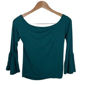 L&D Green Off Shoulder Bell Sleeve Blouse size medium