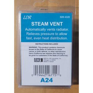 Up for sale is a New LDR Radiator Steam Vent A24, 1/8” angle, 509 4320, New Old Stock. Please look at photos. What you see is what you will receive. Please do your research to determine if this item is right for your application. Return accepted only if the item does not match photos or description. I ship fast. Thanks for viewing.