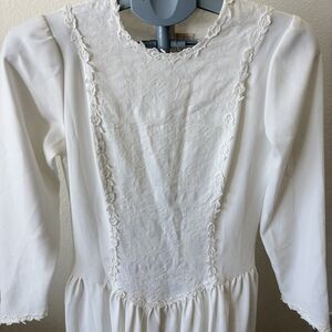LDS Mormon Long White Temple Dress by California Dynasty Sz XS Floral Detail Vintage Bridal Dress Nightgown Romantic Conservative Modest