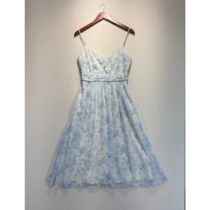 LDT Blue Floral Chiffon Midi Dress Keyhole Cutout Floral Hourglass, Size 4