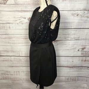 LDT Dress sparkle black size 8 Beaded Career formal pockets high neck Dress