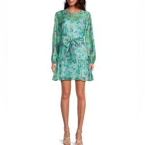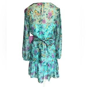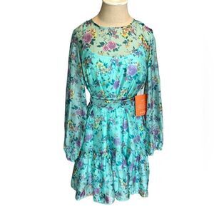LTD by Alex + Michael Toccin Floral Print Crew Neck Long Sleeved Ruffle Hem Dress
