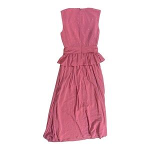 LDT Peplum Maxi Dress Prairie Feminie Fairycore Sz 8 Blush Pink Metallic