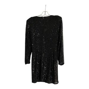 LDT Sequin Mini Dress Long Sleeve Front Twist Black Size 14