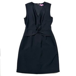 LDT V Neck Sheath Dress Black Size 6 Knot Front Exposed Back Zipper