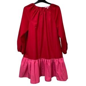 LDT Rachel Color Block Red & Pink Ruffle Hemline Party Dress Size 4