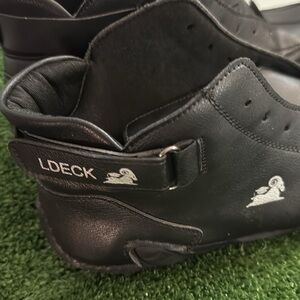 Waterproof nonslip L deck high top men’s shoes. These shoes come with removable insoles for easy cleaning, and adjustable ankle straps