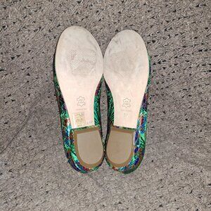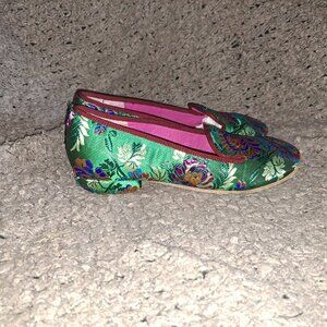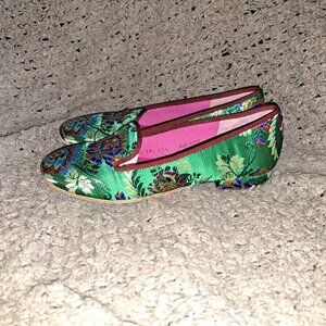 LE BABE SHOES- Made in Italy-Chinese Pattern Silk/Satin Tapestry Flats-Sz 37-NM