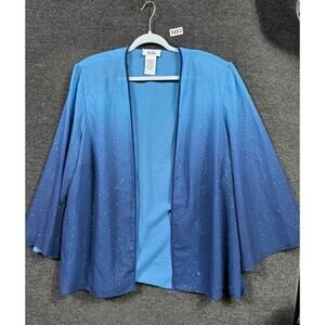 LE BOS Open Front Knit Suit Jacket Blazer Cardigan With Top Sz 24W Blue Sparkle