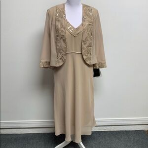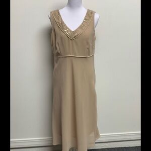 LE BOS | Size 10 | Champagne Embellished Sleeveless Dress & Sheer Jacket. New With Tags. This beautiful dress was bought for a wedding and was never worn. It has been hanging in a closet ever since.