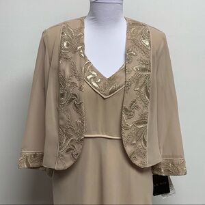LE BOS | Size 10 | Champagne Embellished Sleeveless Dress & Sheer Jacket NWT