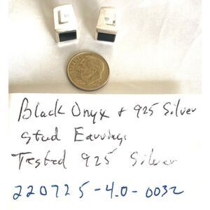 LE# Beautiful black onyx & 925 Silver earrings. These beauties tested as 925 silver without a stamp. This item is sourced from an estate sale and the firmer owner had exquisite tastes. The truly great craftsmanship make this item a true work of art and with its pristine condition It is truly A great value of fine jewelry at costume pricing! Let’s make it yours!