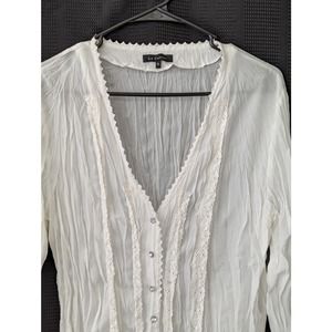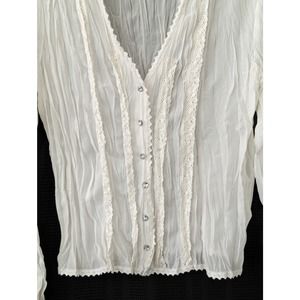 LE CAVIAR! PETIT-CROCHET CRINKLED CREAM "DIAMOND" BUTTON BLOUSE, TOP! SZ XL