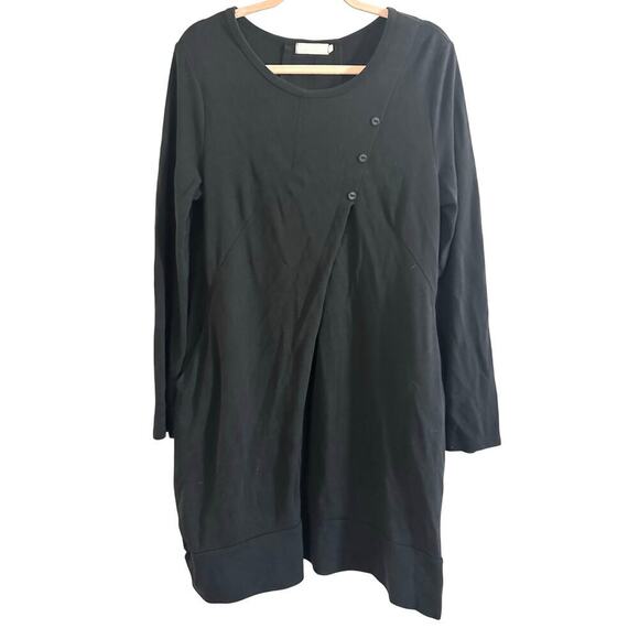 LE CIEL Black Asymmetrical Button Lagenlook Witchy Tunic Dress Long Sleeve
