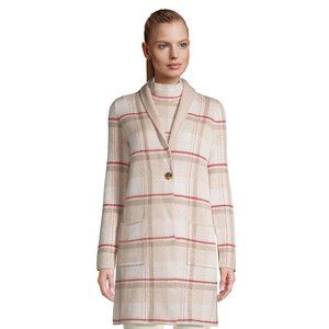 LE Coatigan Cardigan Sweater Coat Ivory Cream Pink Plaid PS SP 8P P8 6P P6 10 12