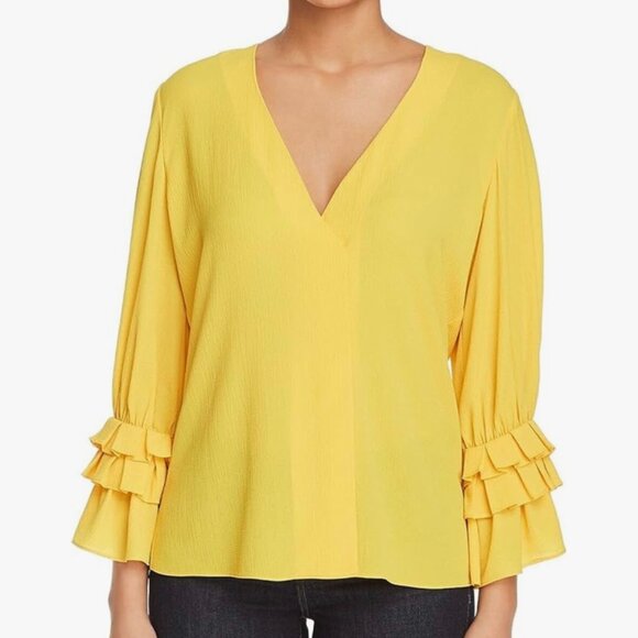 LE GALI YELLOW BELL SLEEVE V-NECK TOP S