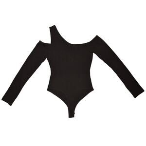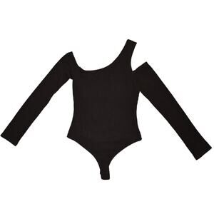 LE LIS COLLECTION $49 Cutout Sleeve Ribbed Knit Thong Bodysuit Black Medium