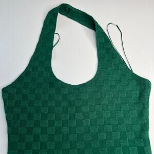 LE LIS Collection Women's Bodysuit Open Back Checkered Print Forest Green Size S