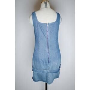 LE LIS Denim Mini Dress M Belted Tank Sleeveless Square Neck Blue Y2K Casual