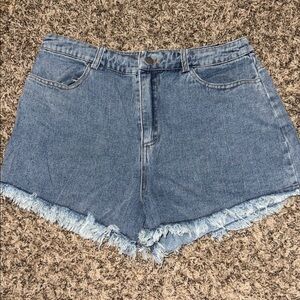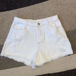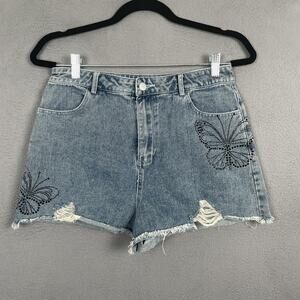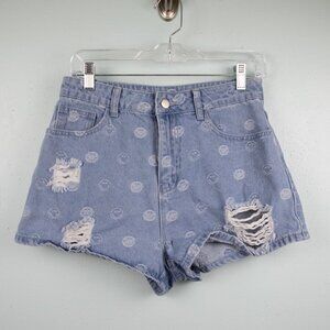 LE LIS | Distressed Smiley Face Denim Shorts