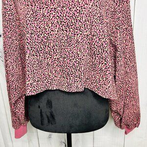 LE LIS Pink Animal Print Cropped Balloon Sleeve Pullover Sz L