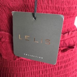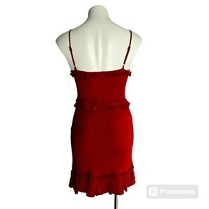 LE LIS RED SMOCKED STRAP RUFFLE MINI DRESS.