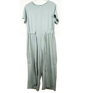 LE LIS | Sage Green Short Sleeve Jumpsuit Drawstring Waist Wide Leg Small
