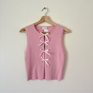 LE LIS Satin Bow Detail Sleeveless Sweater Top in Pink NEW Size Medium