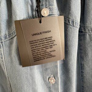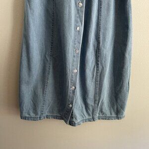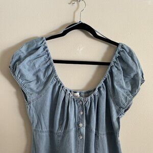 LE LIS Women L Denim Casual 90s Rodeo Puff Sleeve Button Front Mini Dress.