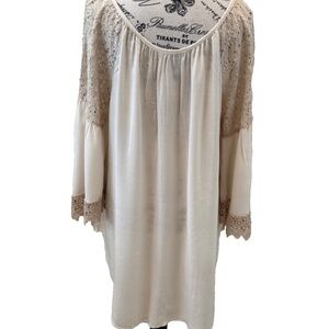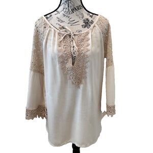 LE MARAIS Paris Cotton/Lace Trimmed Boho Blouse; Tan; Women's Size MED
