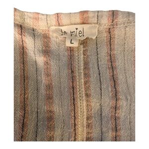 LE MIEL top, all cotton, raw hems, pink and cream stripes, short sleeves. Size L
