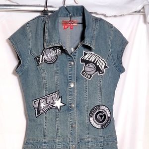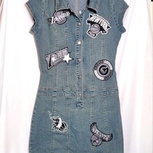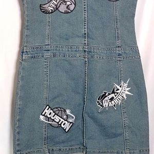 🔥LE MORE🔥BLUE DENIM DRESS W🏀NBA EMBROIDED🏀LOGOS ✨️WOMEN'S MEDIUM