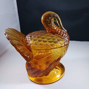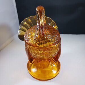 Excellent used clean condition, no chip no crack. Please scroll picture for more details. LE SMITH GLASS Amber 2 Piece Turkey Lid and Base Candy Dish. Pet and smoke free home.