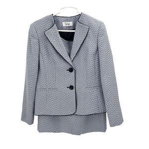 LE SUIT 2 PC Blue Black Blazer Jacket Skirt Suit Set Executive Career