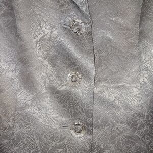 Sophisticated silver blazer and skirt set. Perfect for formal events. Luxurious texture and design.