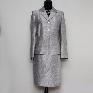 LE SUIT Women 2PC Polyester Lined Notch Collar Long Skirt Suit Size 10 Grey