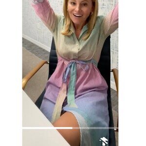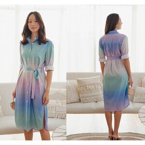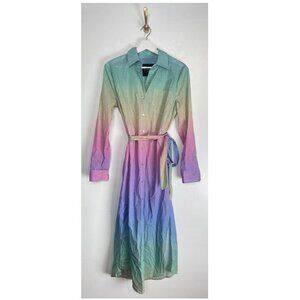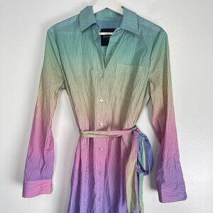 LE SUPERBE Girlfriend Stripe Long Sleeve Cotton Shirtdress Ombre Sky Size US 2