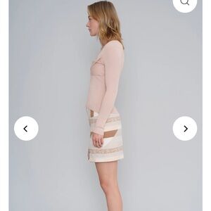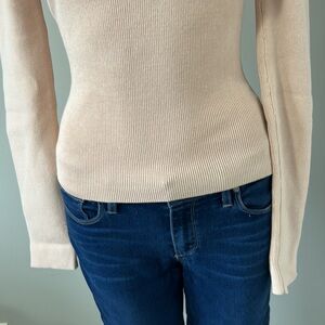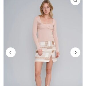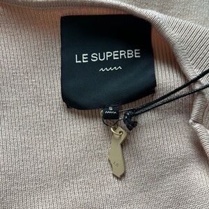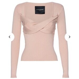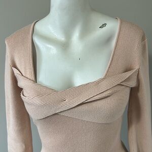 LE SUPERBE Twisted Sister Open Neckline Top Rib Knit Long Sleeve Nude Sz S NEW
