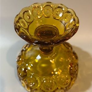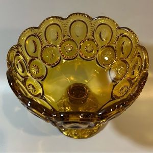 LE Smith Amber Glass Compote Scalloped Edge Moon and Starsβ