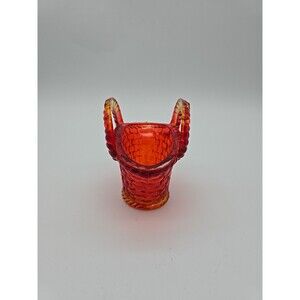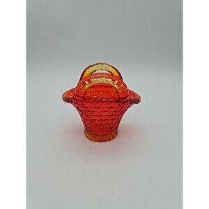 LE Smith Amberina Glass 3.75” Basket Figurine 2-Handled Weave Pattern Glows
