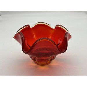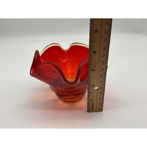 LE Smith Amberina Glass Pedestal Bowl Red Vintage Mid Century Modern