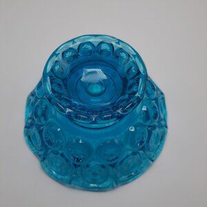 LE Smith Blue Glass Moons & Stars Scalloped Edge Pedestal Bowl Compote