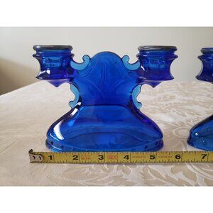 LE Smith Double Candle Holders Cobalt Blue Set Of 2 Depression Glass Vintage
