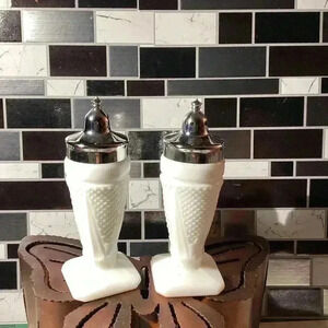 Vintage LE Smith Fayette Texture Sawtooth Milk Glass Salt And Pepper Shaker