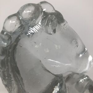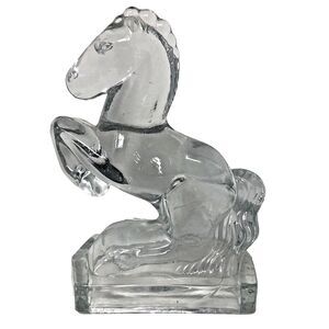 Set of 2 LE Smith rearing Glass Horse Bookends Clear Equestrian Stallions, Vintage MCM