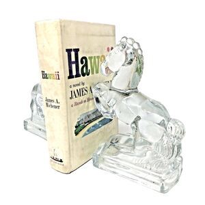 LE Smith Glass Horse Bookends Clear Equestrian Vintage MCM 8" tall Set of 2