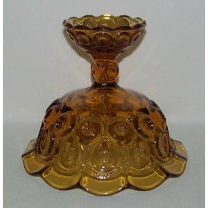 This is a nice amber large footed flared edge compote in the Moon and Star pattern, No.4206. It was made by the Smith Glass Co. It measures 6 1/2 inches tall, 8 inches across the top and 3 5/8 inches across the base.