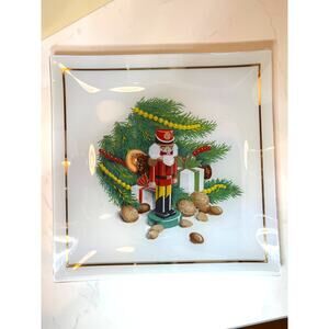 Measuring 9" square with a .5" Depth, this L.E. Smith reverse-painted glass plate features a Nutcracker along with some friends under a beautifully decorated Christmas tree. The item exhibits minor wear on the back, likely due to age and use; however, it is free of chips, cracks, breaks, and repairs. Please review all photos, keeping in mind that lighting and color can vary from screen to screen, and make all inquiries before purchasing. Sold items ship within one (1) business day - unless I am dealing with a hurricane.